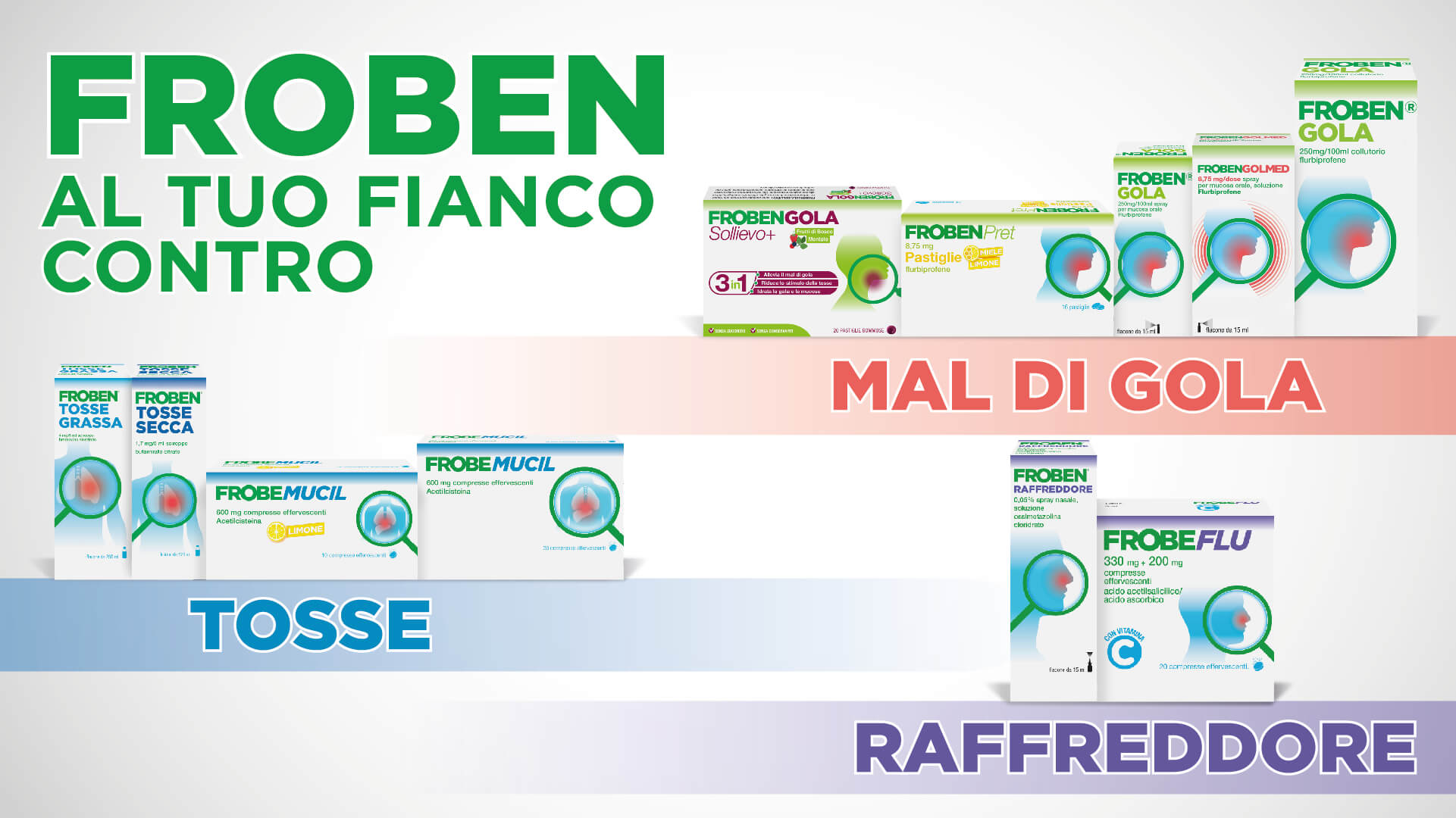 Dall’esperienza Froben Gola nasce quindi una linea di prodotti ideata per fronteggiare in modo mirato i disturbi del cavo orale e gli altri malanni di stagione.