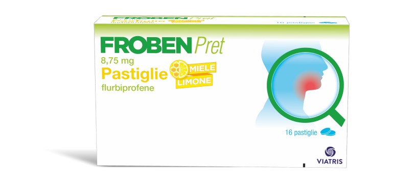FROBENPRET appartiene a un gruppo di medicinali chiamati farmaci anti-infiammatori non steroidei (FANS), utilizzati per alleviare il dolore e l’infiammazione. Ogni pastiglia, all’aroma di limone e miele, contiene 8,75 mg di flurbiprofene. Questo medicinale è usato per alleviare sintomi del dolore e delle irritazioni delle gengive, della bocca e della gola come: