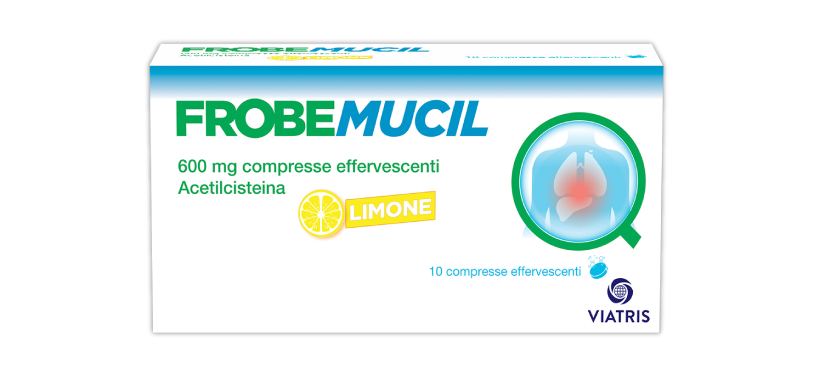 FrobeMucil appartiene a un gruppo di medicinali chiamati mucolitici, per fluidificare le secrezioni mucose delle vie respiratorie, favorendone l’eliminazione. Ogni compressa effervescente contiene 600 mg di acetilcisteina, mucolitico derivato da un amminoacido naturale ad intensa azione fluidificante sulle secrezioni mucose e mucopurolente.